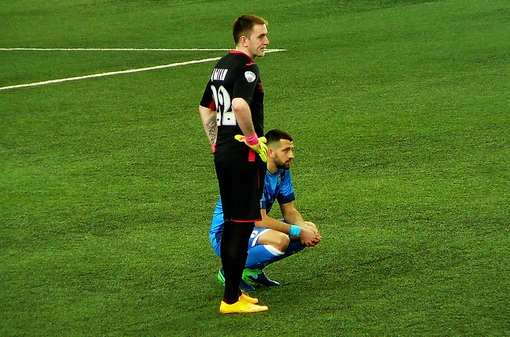 Травмой Коржунова игра не ограничилась. Еще один игрок орлов, возможно, выбыл из строя – Владимир Азаров. В борьбе за верховой мяч, он столкнулся с полузащитником гостей Романенко.