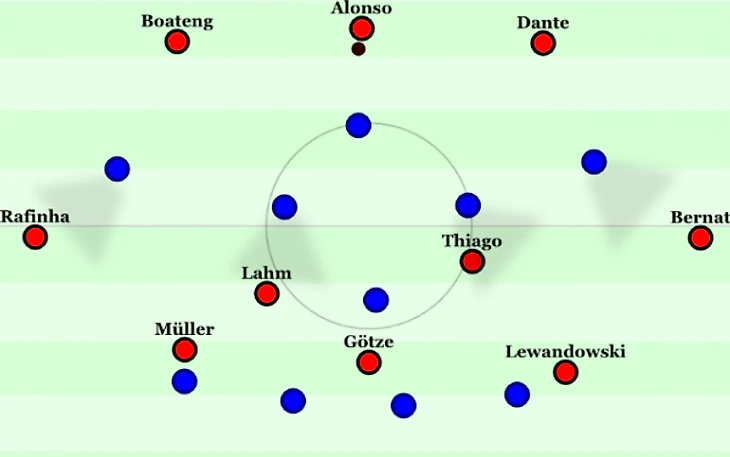 Вариант с логболами был для «Баварии» в этих встречах наилучшим. Если в первом матче они старались играть через игроков полузащиты «Порту», то во втором просто перебрасывали мяч за их спины, и, таким образом, полностью отрезали первую линию обороны.