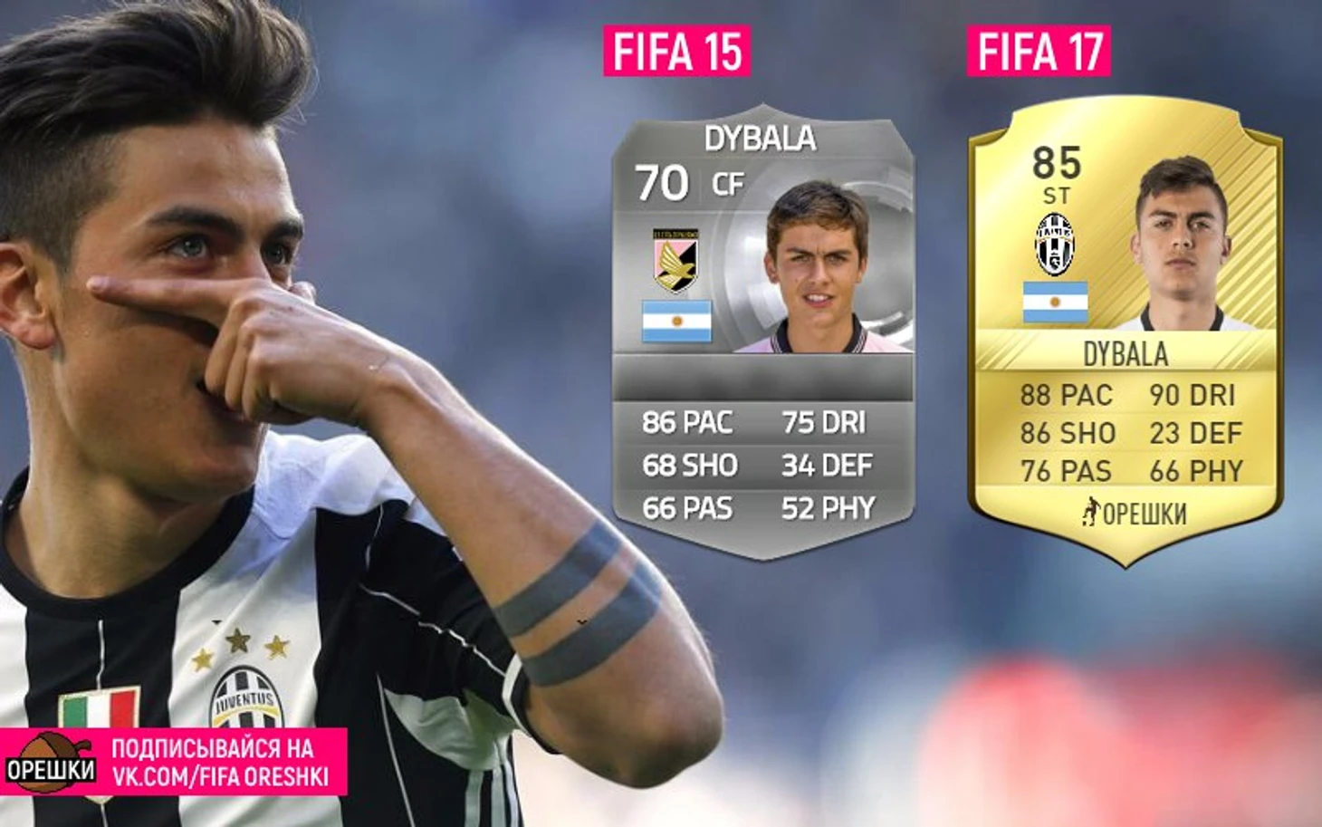 Рейтинг Дибала от FIFA 15 к FIFA 17