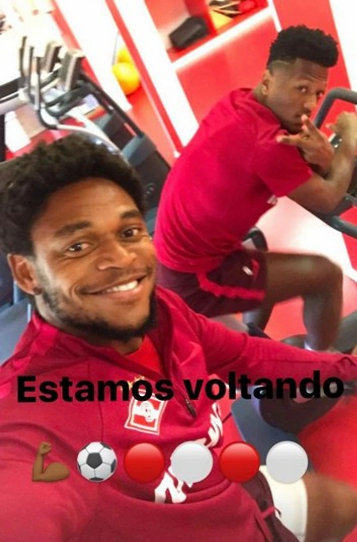 Нападающий «Спартака» Луис Адриано опубликовал в социальной сети «Инстаграм» фотографию, на которой он вместе с партнёром по команде Зе Луишем запечатлён за работой на тренажёрах. Причём фотография была сопровождена текстом: «Мы возвращаемся».