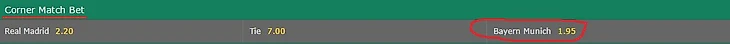 3) В первой встрече Бавария выиграла по угловым 8:4, несмотря на удаление на 61 минуте. Вообще мюнхенцы выиграли 4 из 5 последних встреч с Реалом (с 2012г.), ещё в одной было ровно по 5 углов с обеих сторон. Общий счёт 43:19 в пользу Баварии.