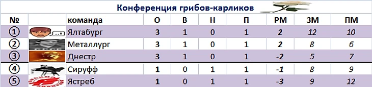 В Белой Розе Конференции явного лидера нет. По 3 очка набрали Ялтабург, Металлург и Днестр.