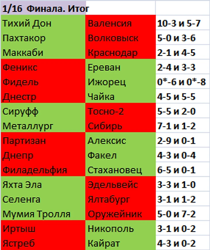Итоги 2-го тура и ответных матчей 1/16 Кубка