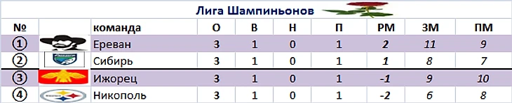 Положительная разница мячей пока у Еревана и Сибири, отрицательная - у Ижорца и Никополя.