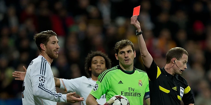 К сожалению для мадридских болельщиков капитан "Реала" может не только забивать решающие голы в важнейших матчах, но и зарабатывать удаления.