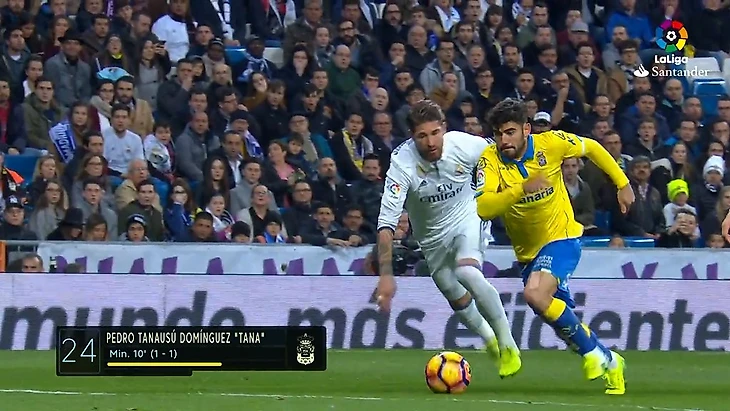 В Ла Лиге ситуация аналогичная. Вот один из недавних примеров, когда в матче с "Лас-Пальмасом" два гола оказались на совести Серхио Рамоса. Сначала он позволил своему оппоненту беспрепятственно принять мяч, войти в штрафную площадь и прицельно пробить. А затем заработал пенальти в свои ворота. И это был уже 4-й одиннадцатиметровый Рамоса в текущем сезоне.