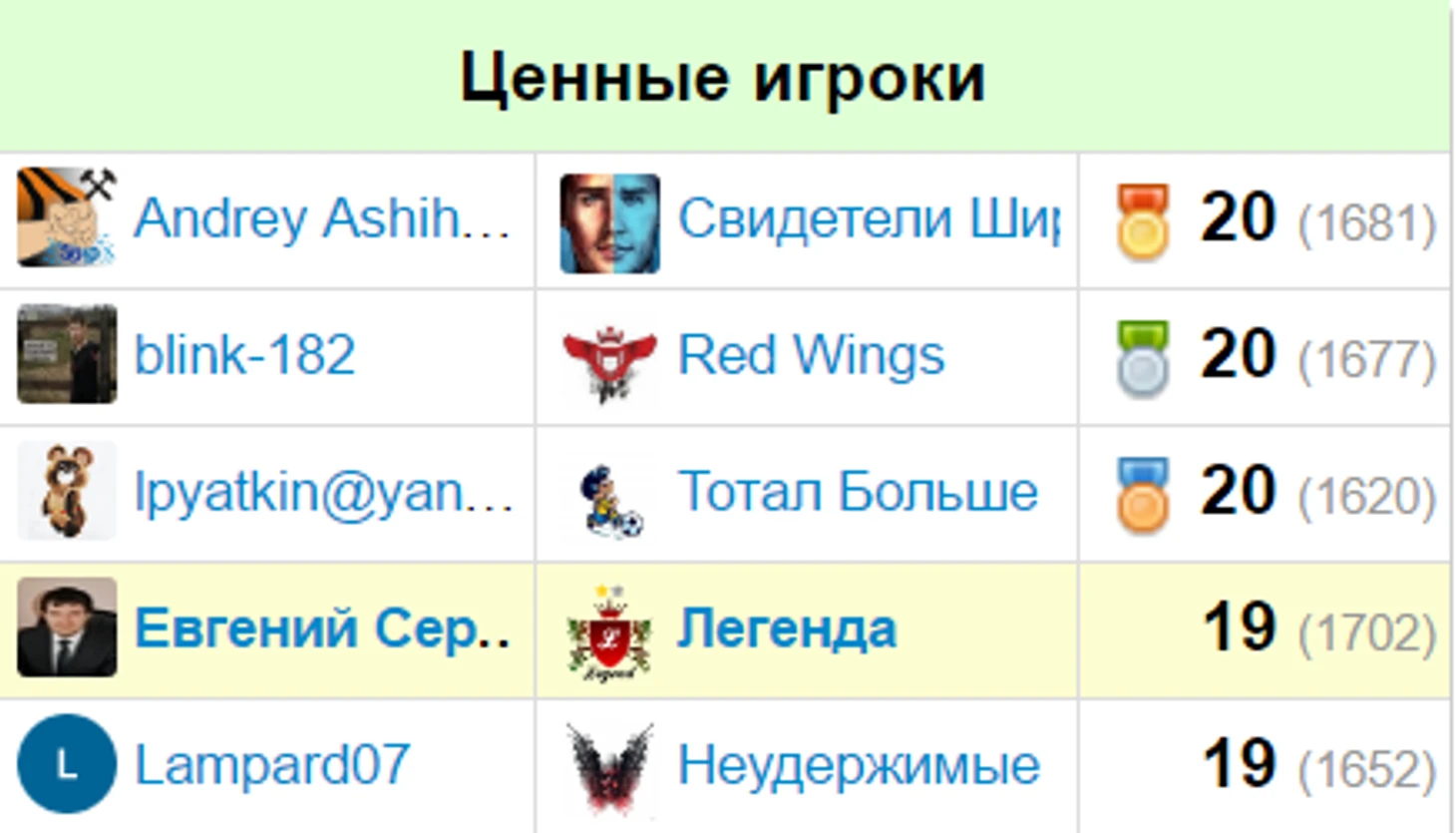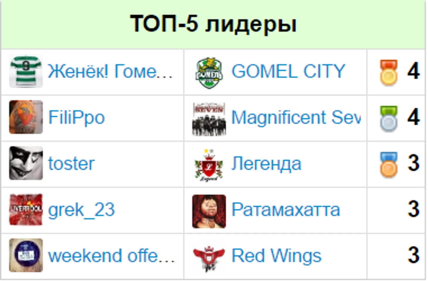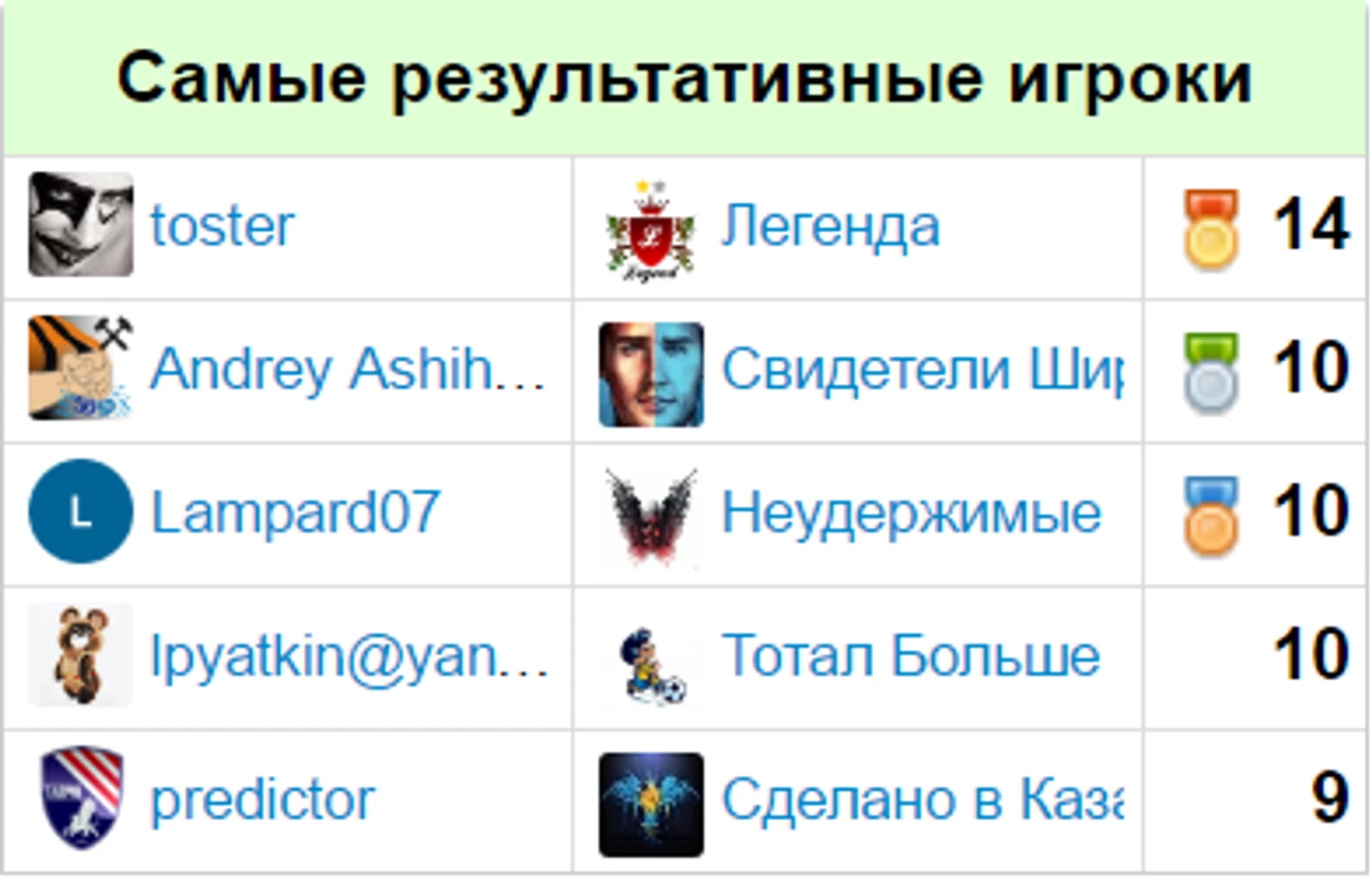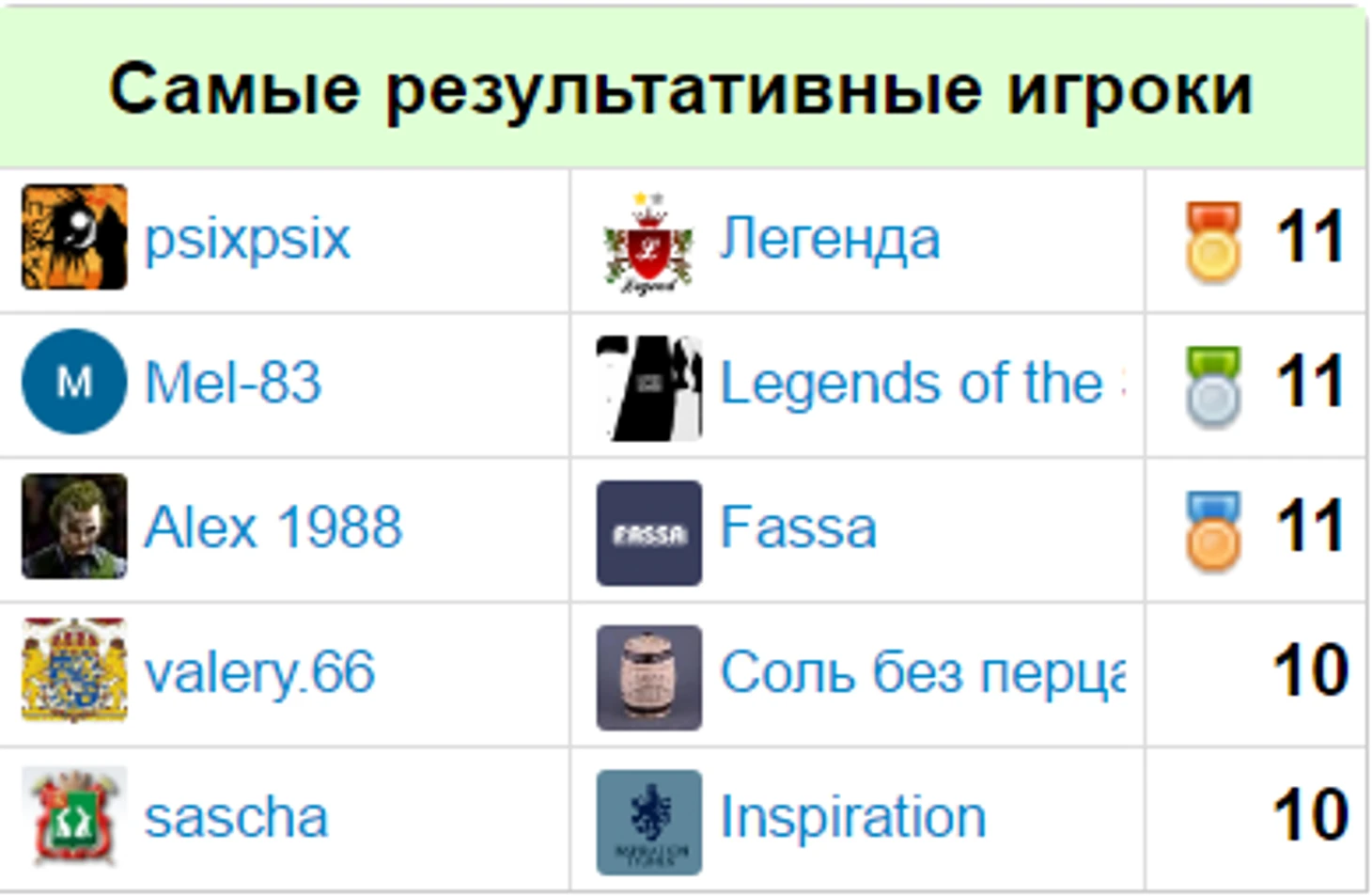 Вова psixpsix забил за 2 недели 16 голов и снова вышел в лучшие голеодоры команды. Вова - лучший бомбардир команды в 7-ми турнирах (в 6-ти из них - единоличный).
