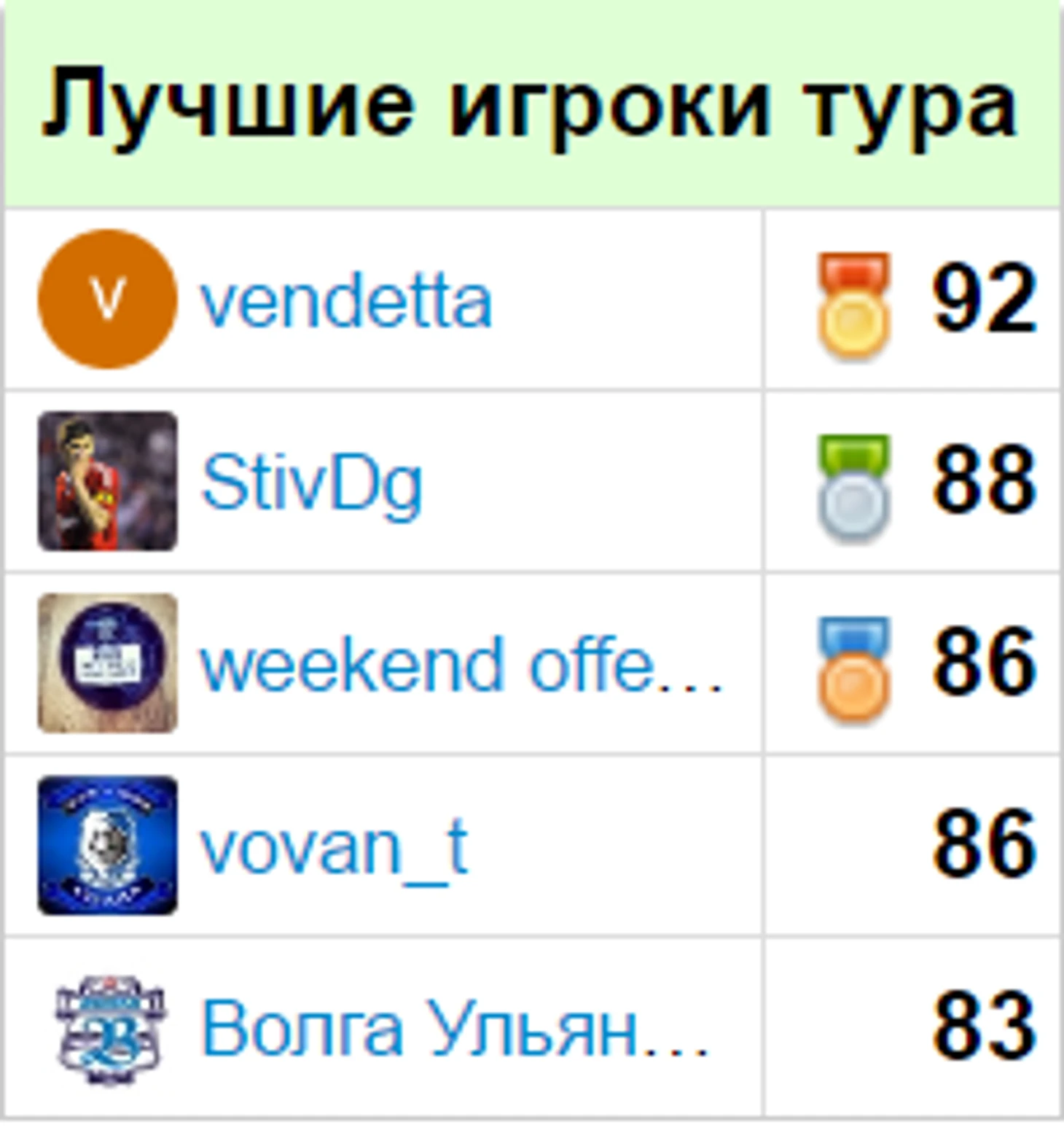 6. Spartak Moscow 39 очков (4,14,2,1=21)