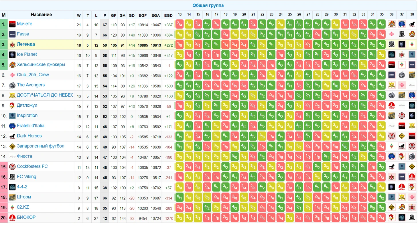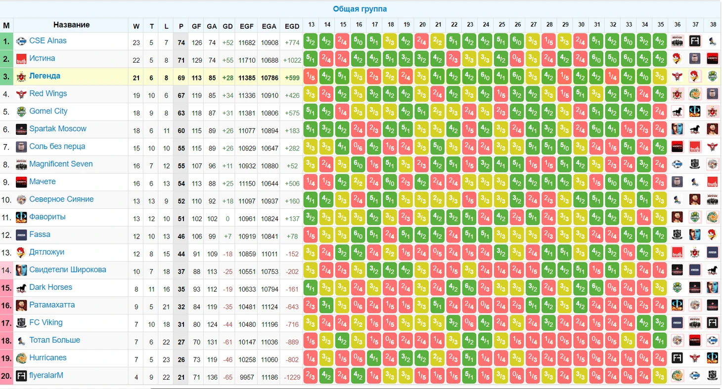 8 команд остаются претендентами на топ-3. У нас неплохой календарь ближайших игр, что может стать преимуществом. Ключевые игры в 37 туре: Каустобиолиты-Истина, Фавориты-DZD, Фиеста-Spartak Moscow.