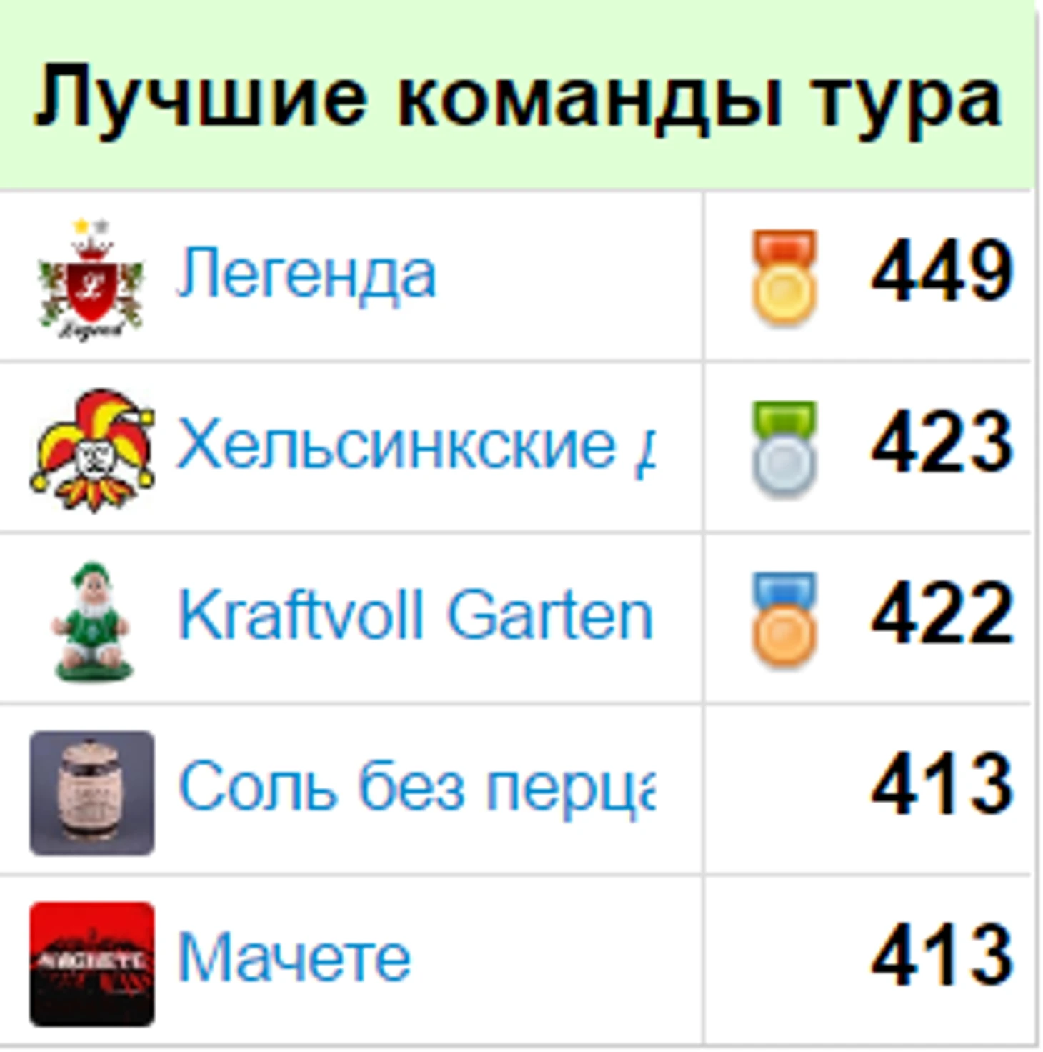 3. Хельсинские джокеры 55 очков (1,19,2=22)