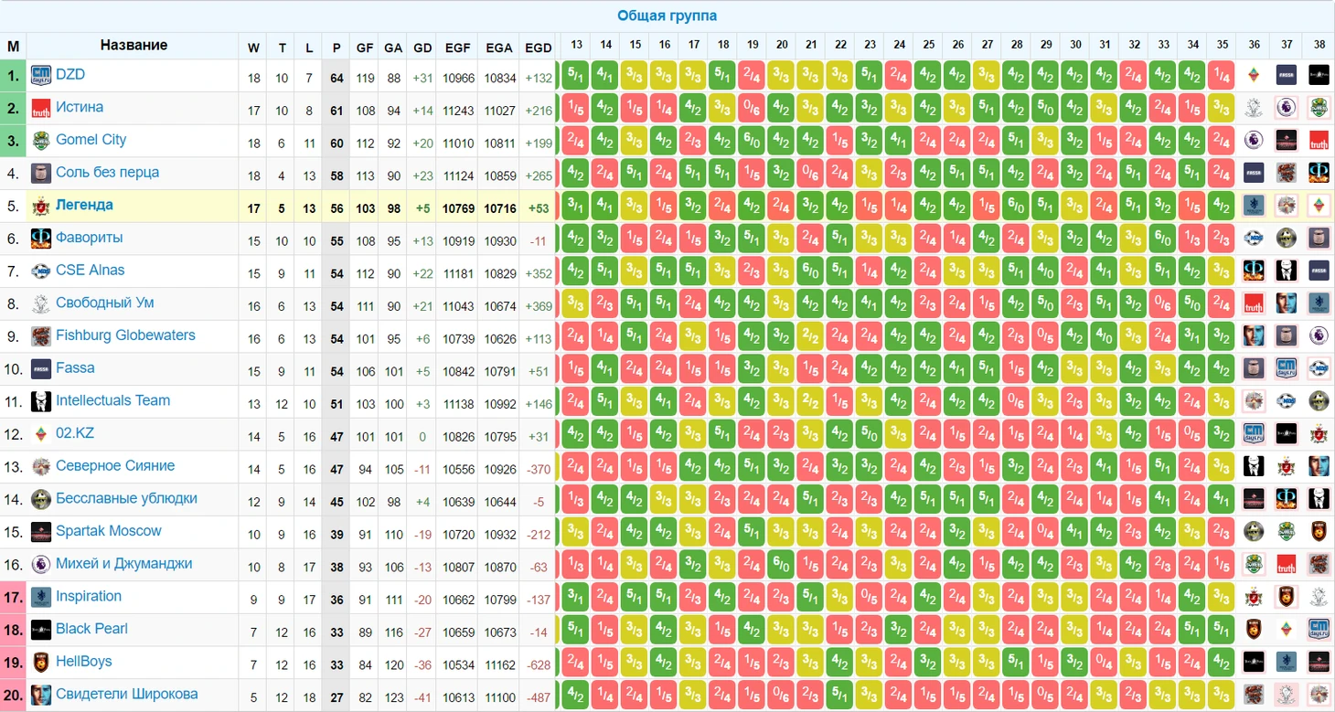 Еще у трех команд 54 очка, их пока в расчет не берем. У нас самый легкий календарь, это может сыграть нам на руку. DZD, думаю, чемпионство не упустят. За тройку призеров, в случае трех побед и осечки конкурентов, мы побороться можем. Ключевые игры ближайшего тура: Истина-Свободный Ум, Фавориты-Алнас.