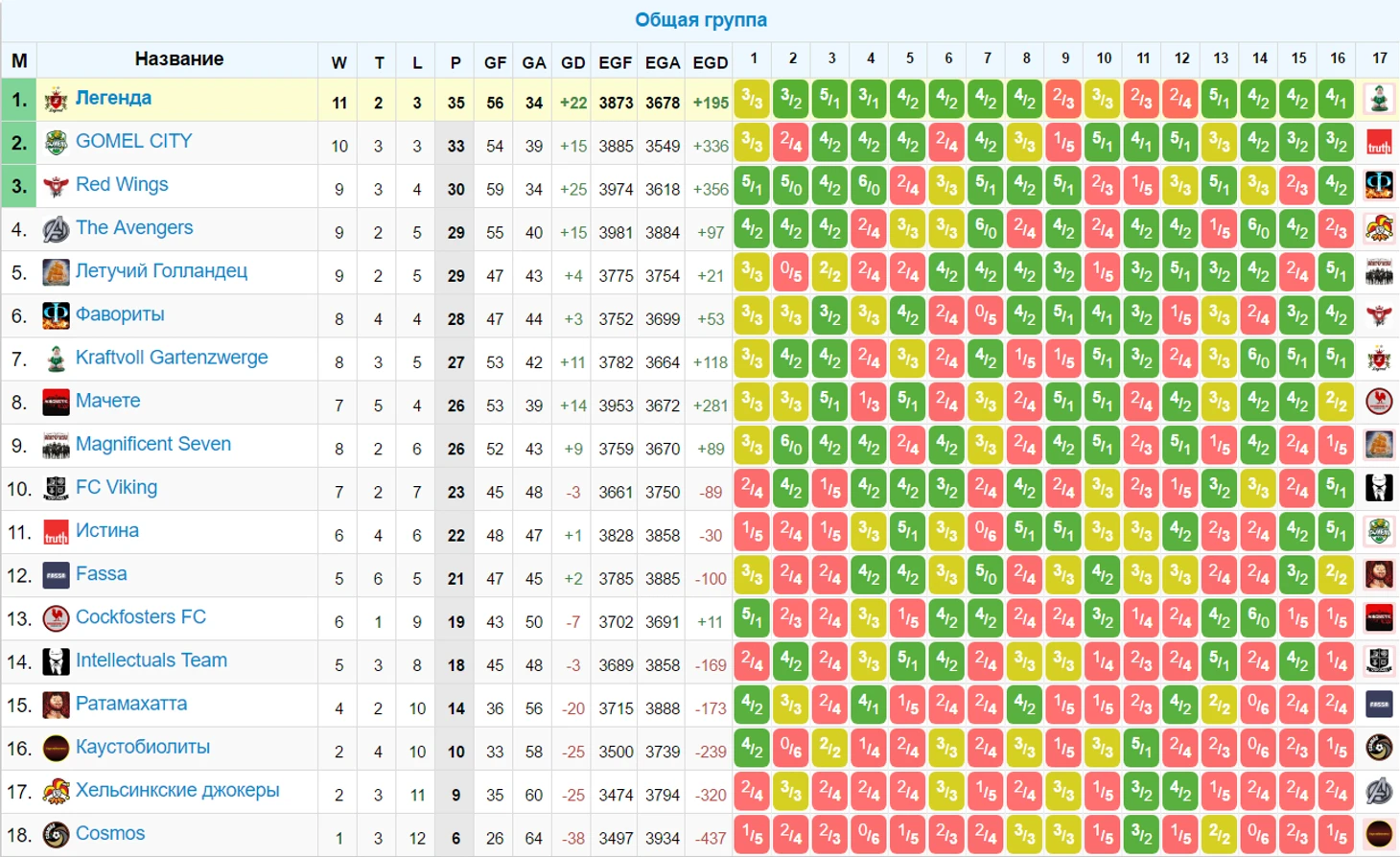 Первые 2 команды уже вышли в Премьер-лигу, мы идем на третьем месте, нужно войти в топ-5. Учитывая легкость нашего календаря и сложность календаря оппонентов, лично я не вижу, что у нас могут возникнуть проблемы. Ключевые матчи ближайшего тура: Мачете-Хельсинские джокеры, Fassa-Club_255_Crew, The Avengers-Достучаться до небес.