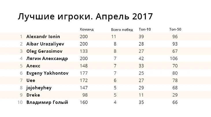Полная версия рейтинга 100 лучших за апрель и предыдущие месяцы доступна по ссылке.