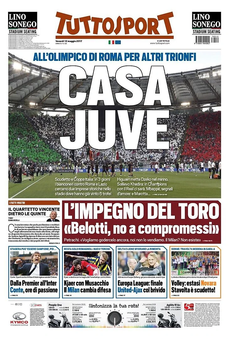 «Дом «Юве». Заголовки Gazzetta, TuttoSport и Corriere за 12 мая