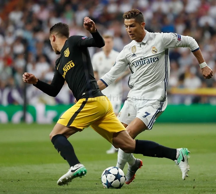 В полуфинале Лиги Чемпионов «Мадриду» выпало играть против «Атлетико», и Криштиану провел одну из лучших своих встреч на «Бернабеу» в «сливочной» футболке, оформив еще один хет-трик, ознаменовавший огромный шаг «Мадрида» к финалу в Кардиффе благодаря победе 3-0.