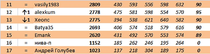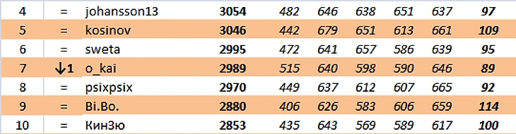 kosinov продолжает лидировать. Было +19 и стало +19.