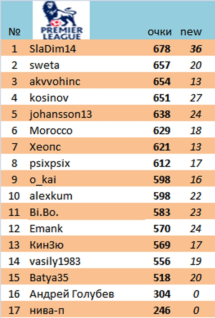 В АПЛ умопомрачительный результат показал SlaDim14 (36 очков)