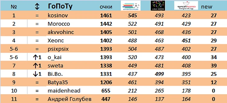 На всякий случай, я зашел в их прогнозные профили и вручную пересчитал очки по АПЛ. Действительно - 13-36...