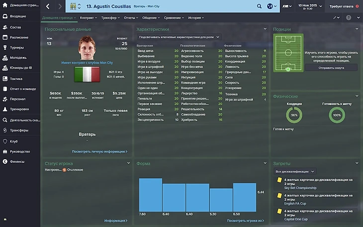 P.S. Занимательно, что наиболее правдоподобный образ Агустина Кусильяса удалось воссоздать компьютерной игре Football Manager 2015 (фото снизу), тогда как данные из текстовых источников представляют преступно мало информации об этом великом вратаре, навсегда поменявшим представление миллионов о футболе.