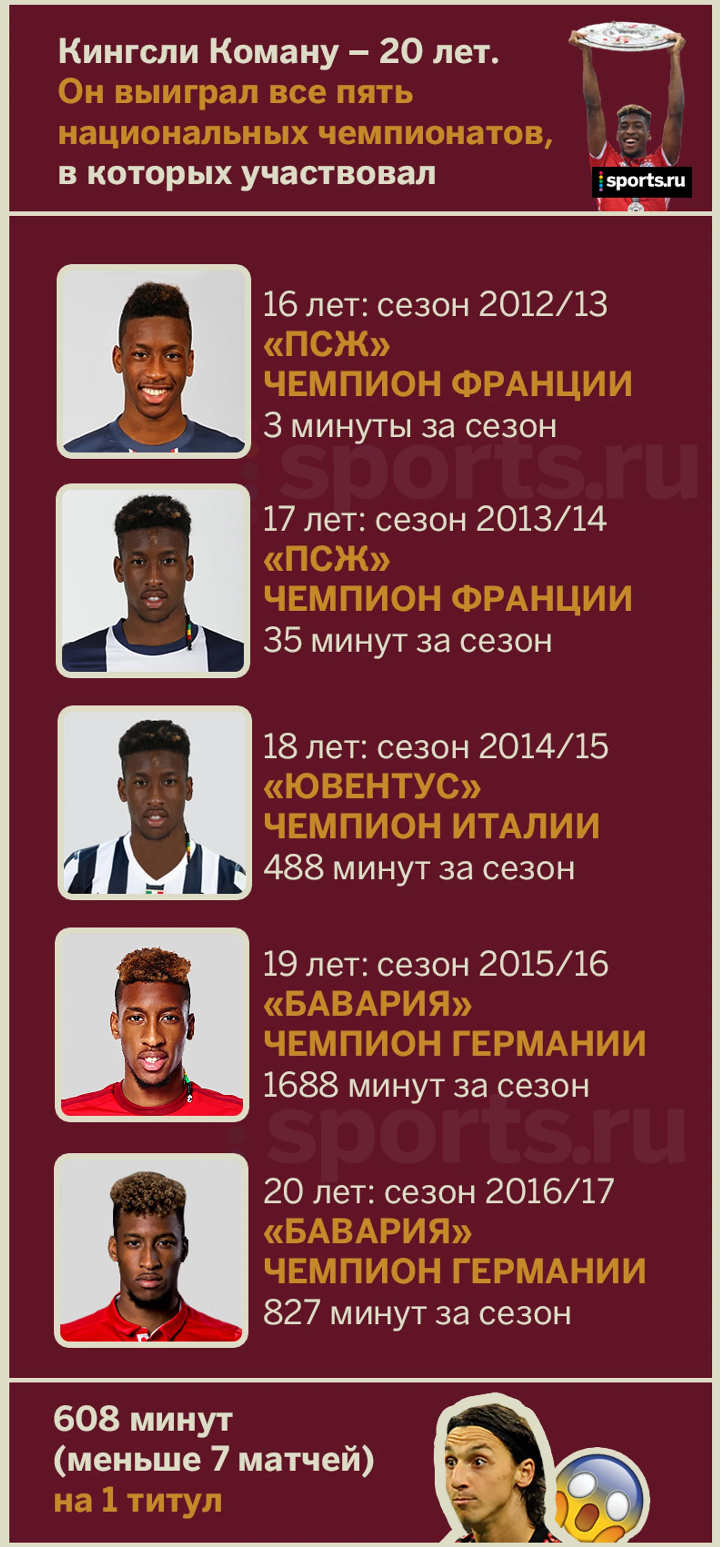 Кингсли Коману всего 20, а у него уже 5 чемпионских титулов.