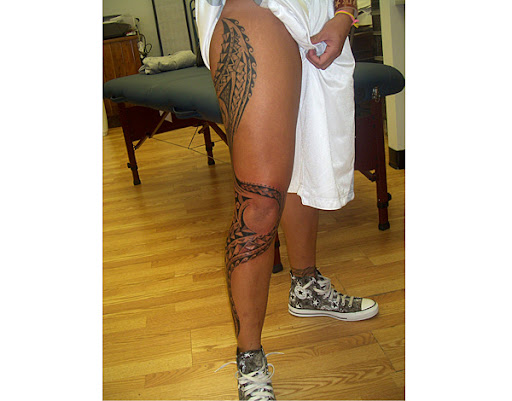 Внимание публики, конечно, более всего привлекает объемное тату на всю ногу: