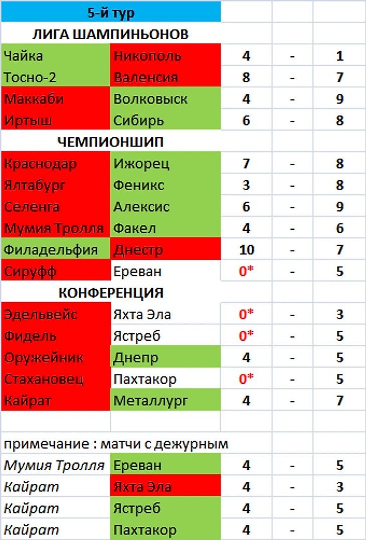 Завершились матчи 5-го тура и финал Кубка