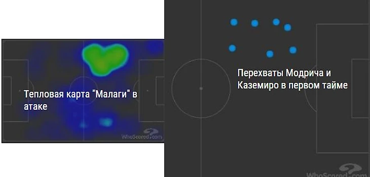 Здесь стоит отдать должное Модричу и Каземиро, чьи 7 перехватов за тайм были именно в той зоне, в которой действовал Форнальс и еще ряд футболистов "Малаги".