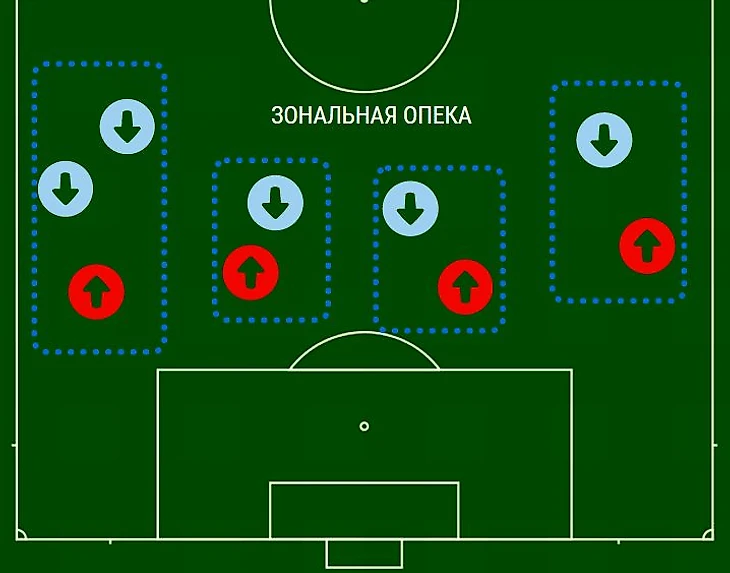 Таким образом, если у защищающегося игрока только один опекаемый в своей зоне, он строго работает по нему, а если в его зоне есть два футболиста, то он отслеживает самого опасного, то есть того, кто ближе всего к воротам.