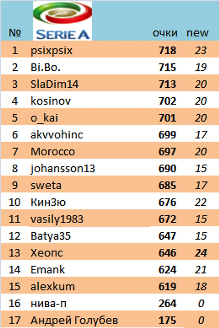 psixpsix ведет +12, но остался еще тур в Серии А на выходных