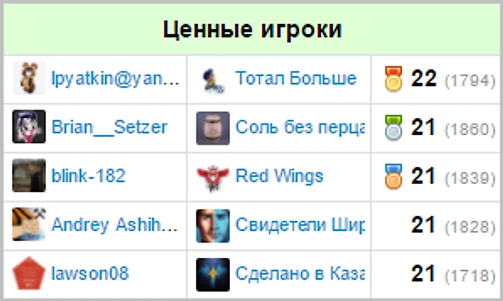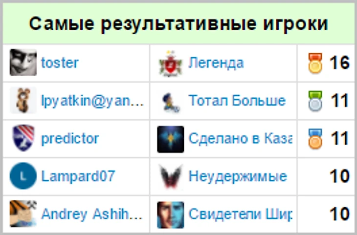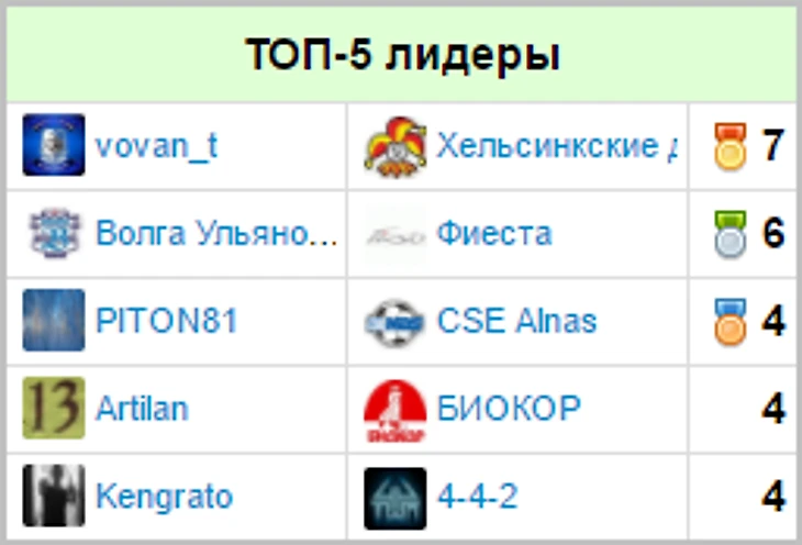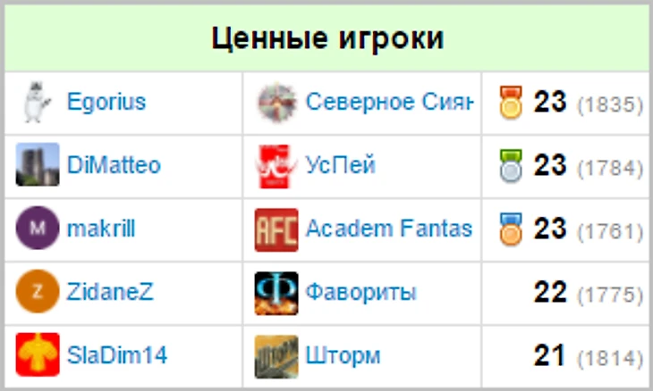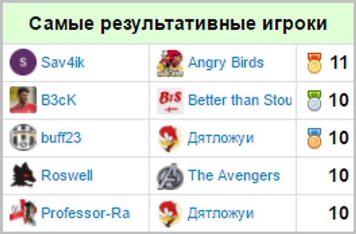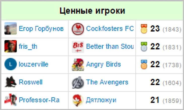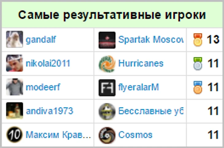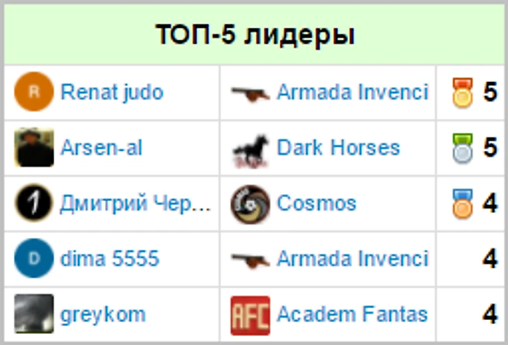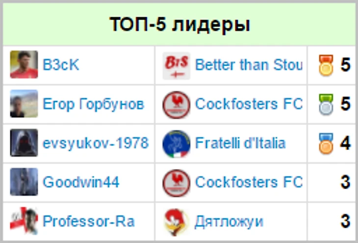 Игроки, чаще всего попадавшие в топ-5 по итогам недели: