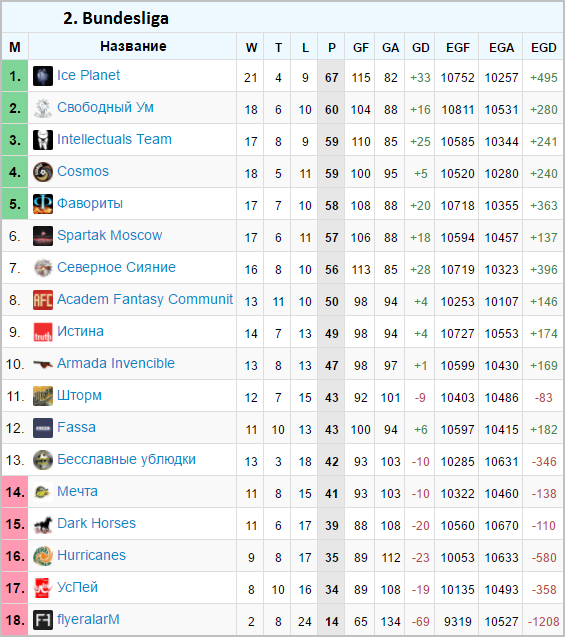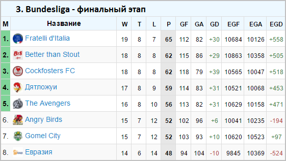 Подведение итогов в H2H турнирах fantasy Бундеслиги сезона 2016/17 начинаю с командного турнира.