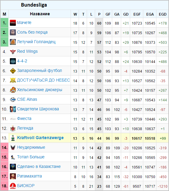 В командниках Германия и Италия фортуна была не на нашей стороне. Пропустили почти больше всех в Германии (10743 ФО). Как итог, вылетели во вторую Бундеслигу .