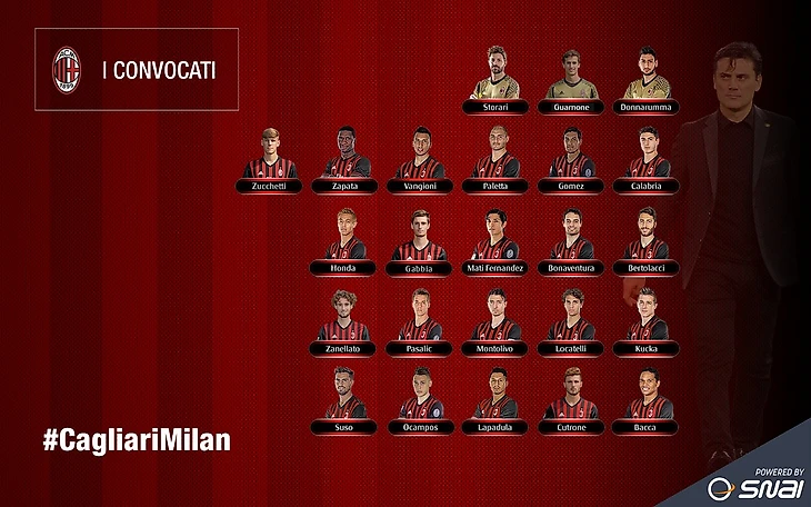 Полузащитники: Бертолаччи, Бонавентура, Мати Фернандес, Хонда, Куцка, Локателли, Монтоливо, Пашалич, Дзанеллато, Габбиа