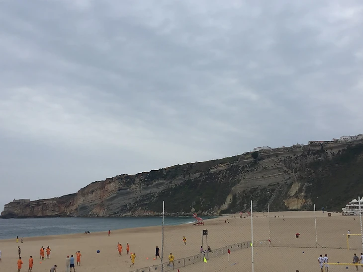 Как уже говорилось, пляжный футбол еще является в хорошем смысле этого слова "диким" - этот вид спорта еще, можно сказать, не до конца сформировался, является малоизвестным, да и организация турниров проходит не в сравнение с профессиональным спортом. Интересно, что в этом году и место проведения турнира было выбрано соответствующее - португальский Назаре, который является не самым популярным туристическим направлением (по крайней мере в это время года), так что событие даже такого масштаба нарушило привычное городу спокойствие. Практически все, кого можно найти на протяженном пляже, имеют непосредственное отношение к какой-либо из команд-участниц, а трибуны большей частью заполняются группами людей в одинаковых спортивных костюмах. Но в этой локации есть и свои плюсы: расположение стадиона позволяет футболистам вместо душа после игры отправиться прямиком в океан, а маленькие размеры городка сводят всех вечером на набережной, благодаря чему просто во время вечернего променада можно встретить как звезд пляжного футбола, так и тренера сборной России Михаила Лихачева, который прибыл посмотреть игру потенциальных кандидатов в состав. Но с равным успехом можно встретить и немцев, которые бурно отмечают окончание квалификационного раунда, хотя никуда и не прошли.