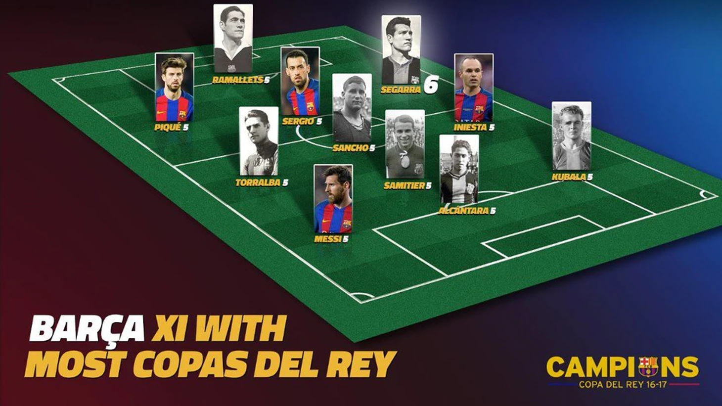 Символическая сборная игроков «Барселоны» по количеству выигранных Кубков Испании