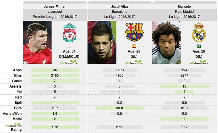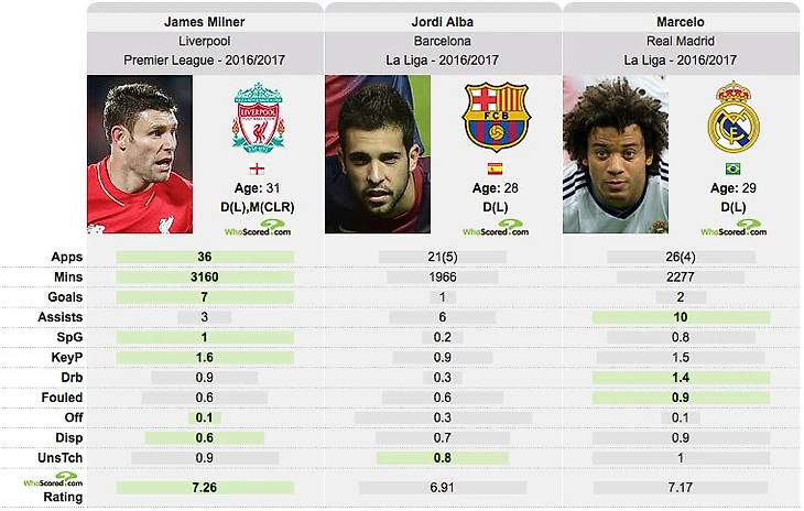 Подводя итог, у каждого есть свои плюсы. Альба цепок, отлично пасует и дорожит мячем, что очень важно для Барселоны. Марсело шикарно подключается к атакам за счет дриблинга и скорости, классно дополняя командную игру королевского клуба. Милнер великолепно пасует и прессингует. Имея железные нервы и харизму лидера, является одним из лучших пенальтистов АПЛ и вице-капитаном красных. То, что нужно для Ливерпуля.