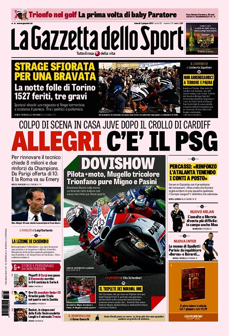«Никогда больше!». Заголовки Gazzetta, TuttoSport и Corriere за 5 июня