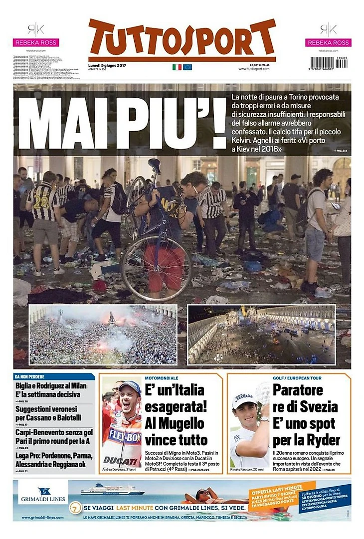 Ночь страха в Турине вызвана многими ошибками и недостаточными мерами безопасности. Ответственный за ложную тревогу сделал признание. Футбол переживает за маленького Кельвина. Аньелли обратился к пострадавшим: «Я отправлю вас в Киев в 2018».