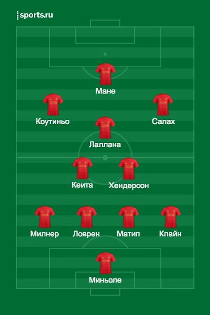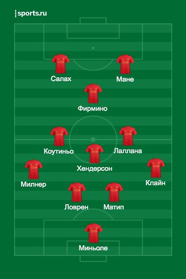 тогда состав может выглядеть совсем по-другому: Миньоле, Ловрен, Матип, Милнер, Клайн, Хендо, Джан (Веналдум), Лаллана, Коут, Мане (Салах), Старридж (Фирмино).