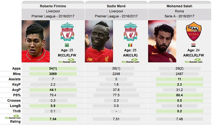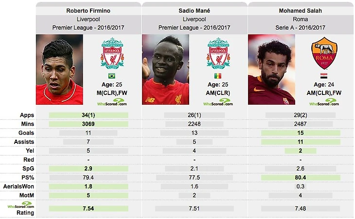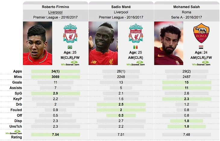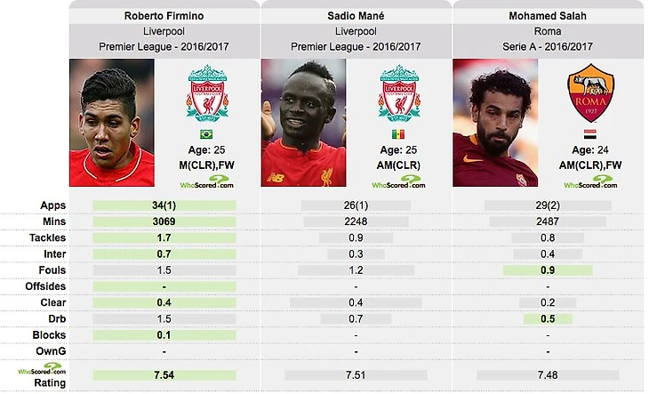 Все познается в сравнении, поэтому, рассматривать ее мы будем сопоставляя со статистикой других игроков, играющих на его позиции в Ливерпуле. Так мы будем иметь лучше представление о нем. Сопоставим с Мане и Фирмино.
