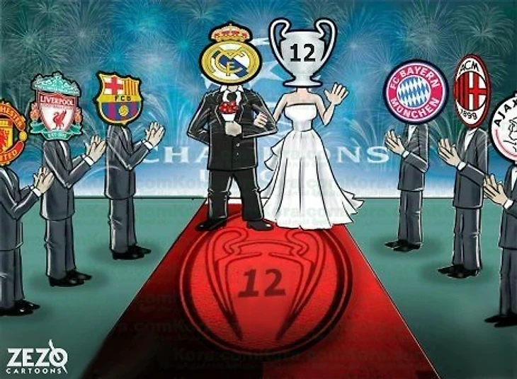 Это клубы нарисованы не только потому что брали ЛЧ и тем более не для массовки . Это клубы которые дважды подряд выходили в финал и имели шанс выиграть его дважды но так и не выиграли. А Реала выиграл , вот они и поздравляют .