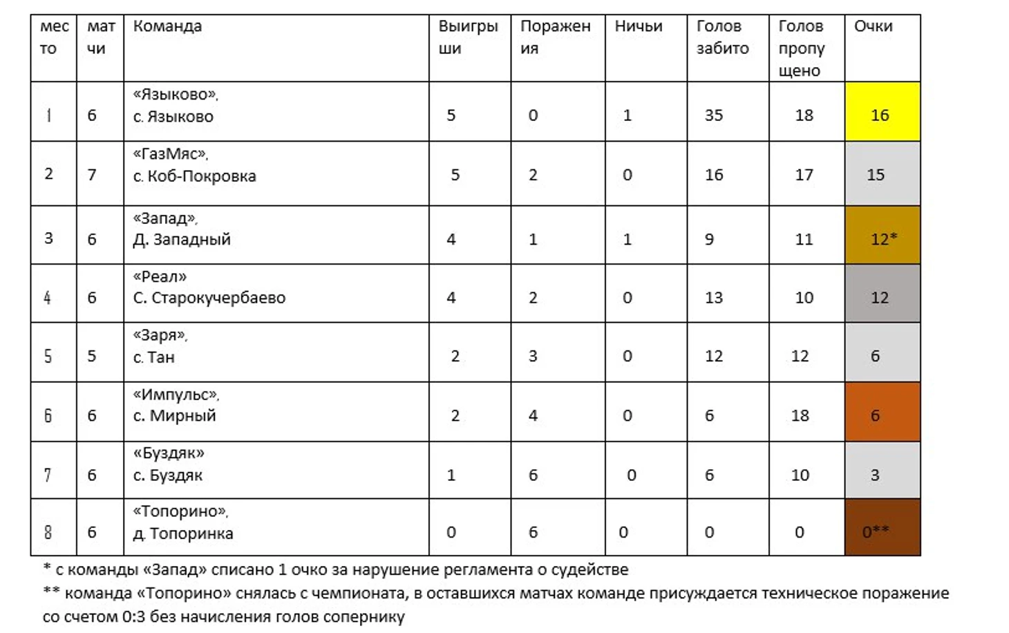 ФК "Запад" получил автоматическую победу над "Буздяком", так как те не смогли обеспечить домашнее поле и выставить состав на игру.