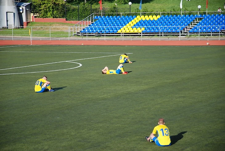 Сразу после финального свистка часть футболистов Строгино повалилась на поле.