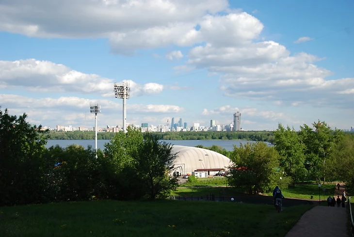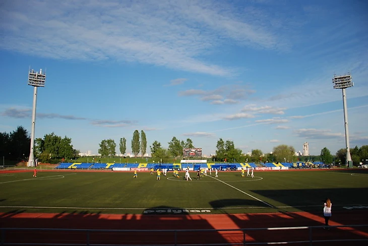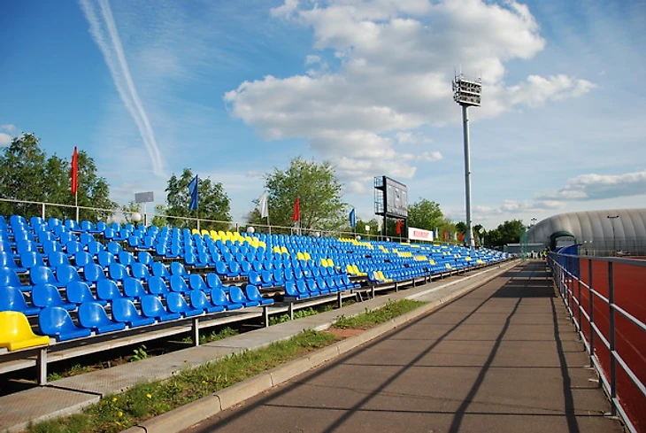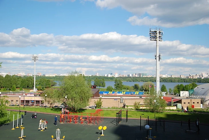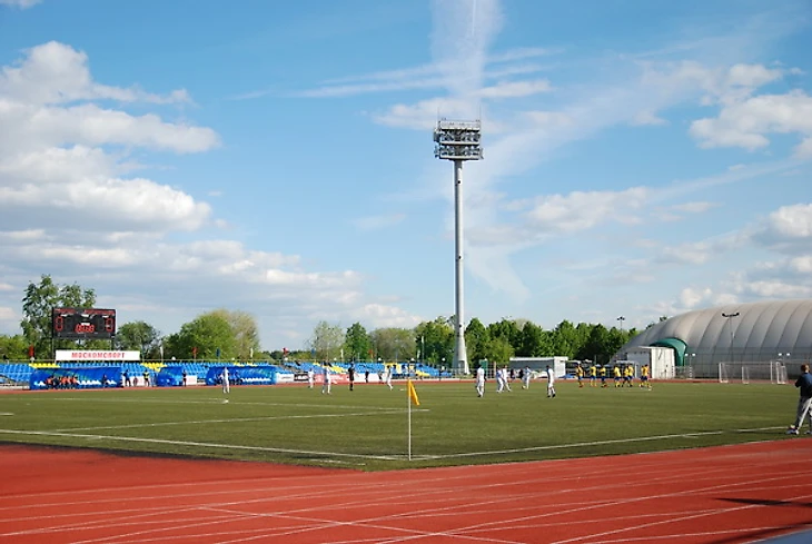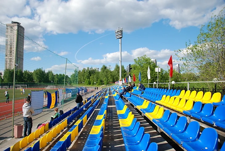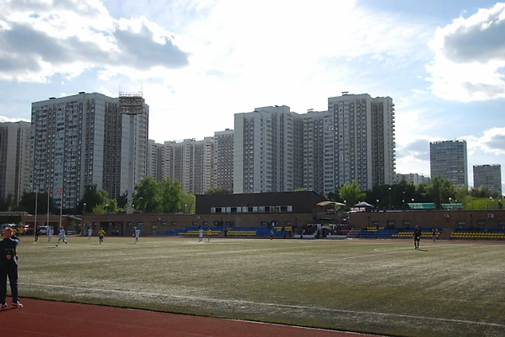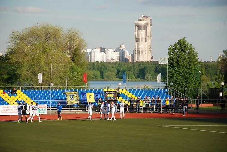 Стадион «Янтарь» в Строгино располагается в очень красивом месте – на берегу Строгинской поймы. Он вообще хороший, но немного странный. Например, до него не так-то просто добраться от расположенной рядом станции метро «Строгино». Вернее, добраться нетрудно, но есть ощущение преодоления пересеченной местности. Сначала надо подняться на пригорок, с которого открывается головокружительный вид на западную часть Москвы.