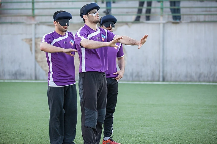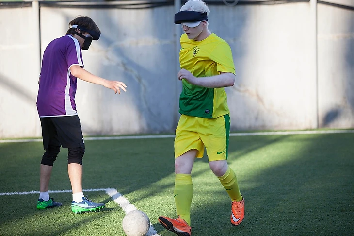 Некоторые люди спрашивали, как можно играть против незрячих? Чтобы уравнять шансы, все игроки носят светонепроницаемые повязки. Кроме вратарей — они должны быть зрячими. Также в каждой команде присутствует ассистент (гид), который располагается за воротами соперника и подсказывает своим игрокам местонахождение ворот. Он стучит по штанге и уточняет левая она или правая. Но главным отличием от большого футбола является мяч. Он меньше обычного, тяжелее и почти не отскакивает от земли. А главное – внутри него трещотка, которая шумит при движении.