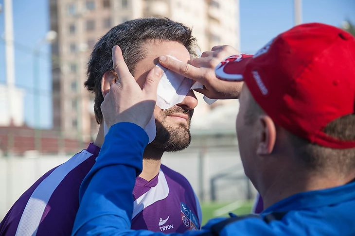 Через несколько минут счет был уже крупным. После третьего или четвертого пропущенного мяча Ислам Махачев даже спросил: «Наш вратарь тоже не видит что ли?». Дело в том, что вратарям было запрещено выходить с линии ворот. К концу первого тайма Ширвани Мурадов попросил замену: «Я тоже хочу со стороны посмотреть на это!» Именно Мурадов создал самый опасный момент у ворот соперника. Мяч после его удара со штрафного угодил в штангу.