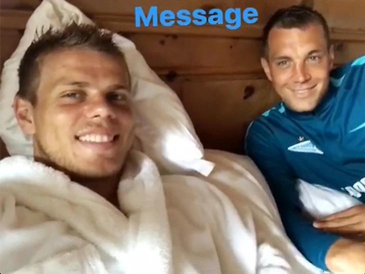 Артём Дзюба и Александр Кокорин выступают с загадочным сообщением – ладонями они изображают чьи-то усы.