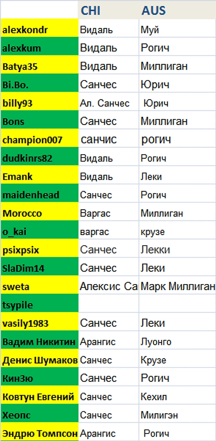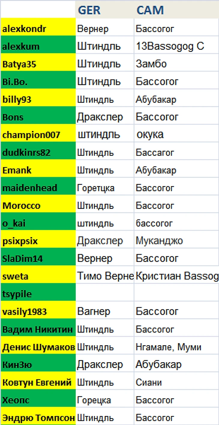 #11-12 GER-CAM, CHI-AUS (UPD Итоги). Списки уже взятых игроков из команд полуфиналистов