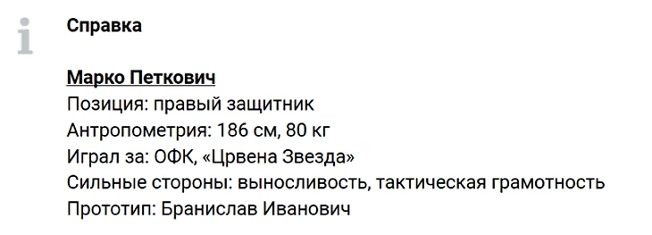 Главная проблема Марко – низкая стартовая скорость. Он неплохо ускоряется, набирая обороты на дистанции, но при рывке резкого крайка зачастую упускает его или фолит. Самый эффективный приём, который использовали соперники «Црвены Звезды» на его фланге, – банальный заброс за спину на быстрого игрока. Вот тут Марко действительно есть над чем поработать.