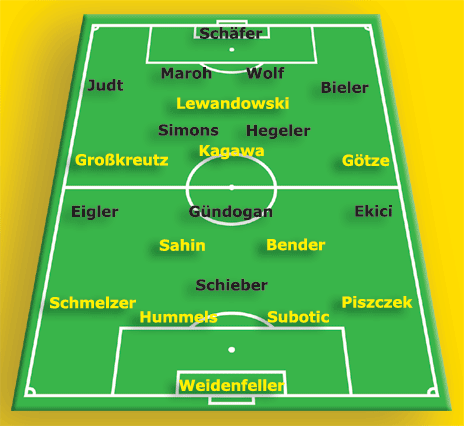 «Боруссия» представлена самой атакующей полузащитой лиги (на счету наших полузащитников 20 забитых мячей из 35), а Синдзи Кагава самый атакующий полузащитник лиги (7 голов)